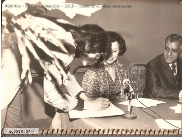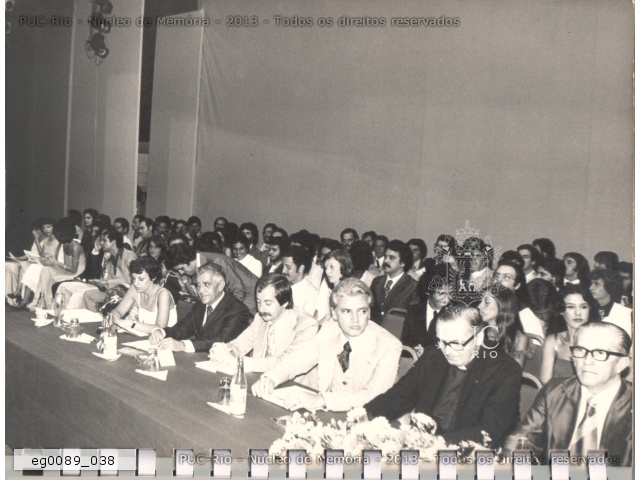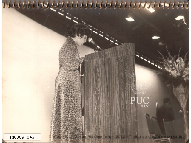 A funcionária Fátima discursa na cerimônia dos formandos do curso de Engenharia Civil do 1° semestre de 1975. |