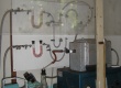 Laboratório de Engenharia Metalúrgica, localizado na casa XXI da Vila dos Diretórios. Aparentemente uma câmara de vácuo, com o compressor do lado esquerdo. Tubos e canos. |