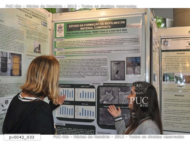 pv0042_033 | 23/8/2011 | Apresentações dos Bolsistas de Iniciação Científica do CTC no PIBIC 2011.2. 'Estudo da Formação de Biofilmes em Material Compósito' - Ellen Trindade dos Santos; orientação dos professores Walter Cravo Jr. e Ivani de S. Bott |