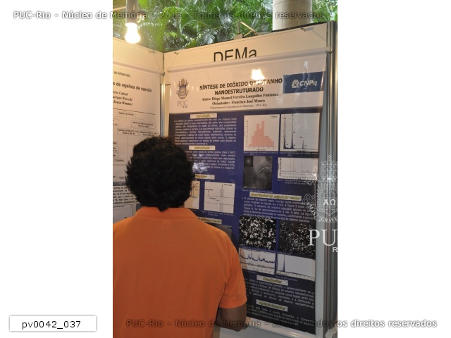 pv0042_037 | 23/8/2011 | Apresentações dos Bolsistas de Iniciação Científica do CTC no PIBIC 2011.2. 'Síntese de dióxido de estanho nanoestruturado' - Diego Manuel Ferreira Lusquiños Fontanez; orientação do professor Francisco José Moura. |