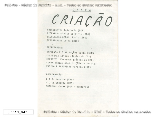 Acervo do professor Alfredo Jefferson relacionado ao DCE da PUC-Rio - jf0013_047 |