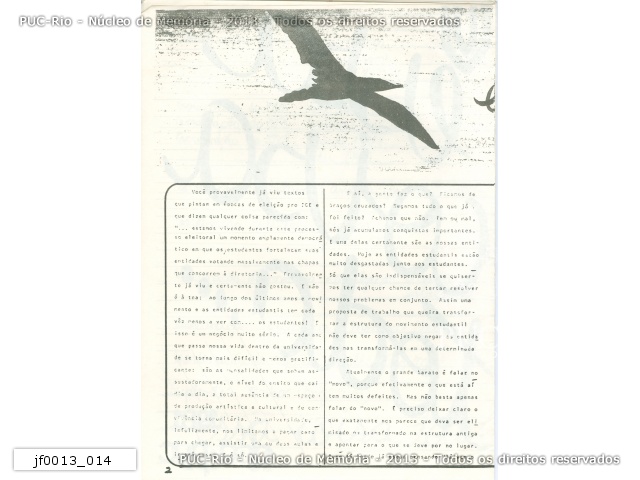 Página 02. Publicação do DCE da PUC-Rio. Alerta para a importância de uma maior participação dos estudantes nas entidades. |