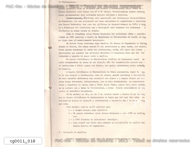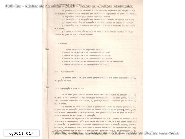 Conclusão do relatório de viagem do prof. Ruy Schneider a escolas de engenharia do norte e nordeste do Brasil. |