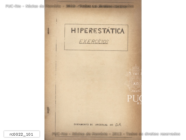 Capa de apostila de exercícios de hiperestática da EPUC. |