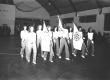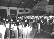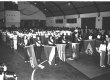 ls0026_008 | 23/10/1975 | Cerimônia de abertura da I Olimpíada Interna da ENGEPUC. Participaram alunos, funcionários e professores. Camisetas e bandeiras da caderneta de poupança Grande Rio. Banda de música. |