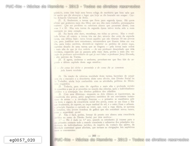 eg0057_024 | 12/1961 | Continuação do discurso de paraninfo pronunciado pelo prof. Nélio Reis aos diplomandos da faculdade de Direito. Início do discurso de paraninfo pronunciado pelo prof. Manuel Diegues Junior aos diplomandos de Serviço Social. |