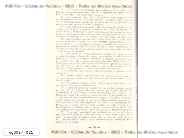 cg0129_913 | 2/1991 | Entrevista com o advogado, poeta e pintor José Paulo Moreira da Fonseca, primeiro aluno matriculado na PUC-Rio, na então Faculdade de Direito das Faculdades Católicas. |