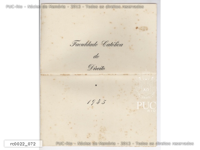 rc0022_072 | 1945 | Capa do convite de formatura da Faculdade de Direito |
