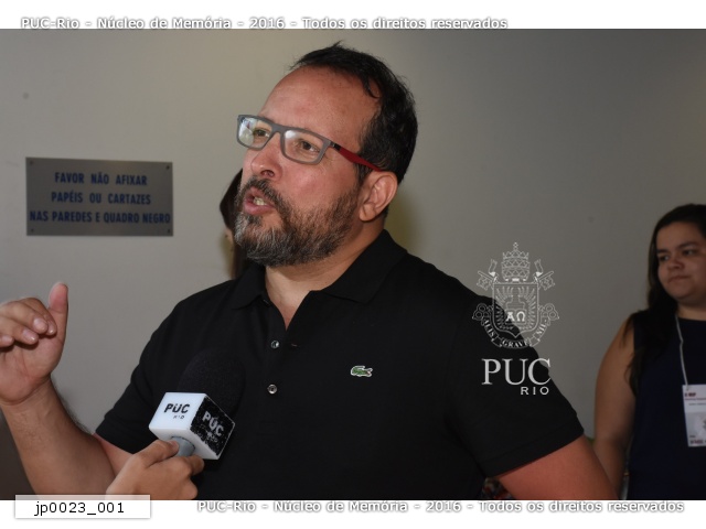 jp0023_001 | 17/11/2016 | O coordenador de Pós-Graduação em Implantodontia do Instituto de Odontologia da Pontifícia Universidade Católica (IOPUC), prof. Luciano Santos Oliveira, durante entrevista sobre o evento à TV PUC. |