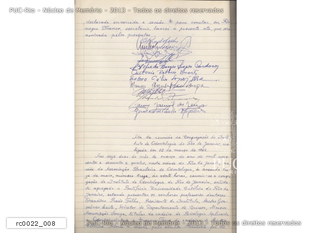rc0022_008 | 12/3/1964 | Ata da reunião da congregação do Instituto de Odontologia. Realizada em sala da Associação Brasileira de Odontologia, Av. 13 de Maio, Centro do Rio de Janeiro. |