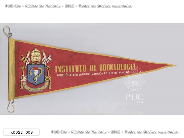 rc0022_009 | 1960 circa | Flâmula do Instituto de Odontologia, com o brasão da PUC-Rio modificado com o símbolo da Odontologia. |