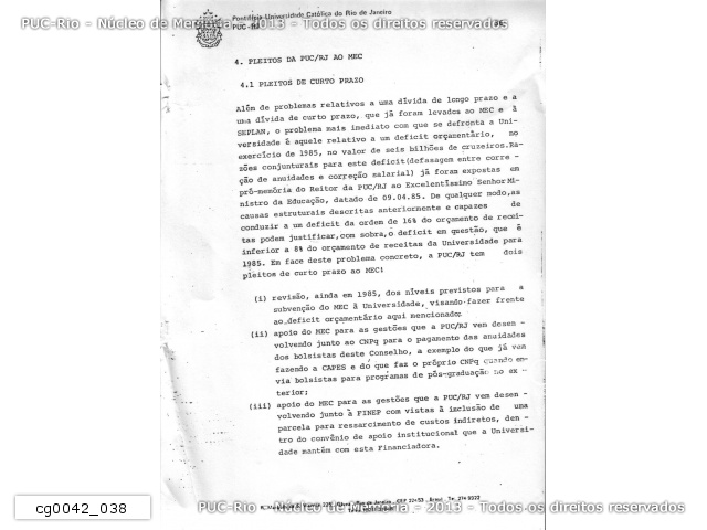 Relatório ao MEC - Pleitos da PUC/RJ - cg0042_038 |