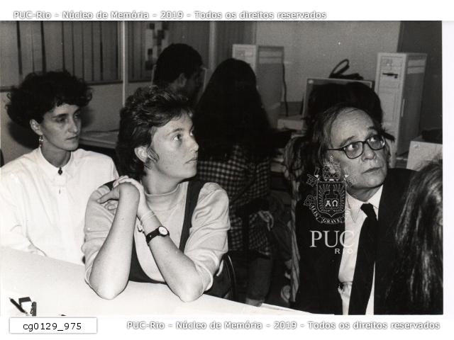 cg0129_390 | 18/8/1990 | Equipe do projeto Computador Cultural que tinha por finalidade catalogar os bens móveis e imóveis de cidades históricas brasileiras. O software para catalogação foi desenvolvido pelo Instituto do Patrimônio Histórico e Artístico Nacional (IPHAN) e o Laboratorium da PUC-Rio. |
