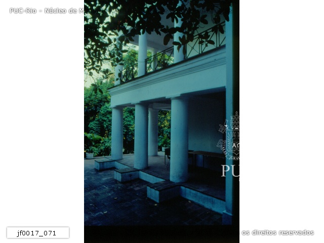 jf0017_071 | 1986 circa | Vista lateral do Solar Grandjean de Montigny, varanda do térreo. |