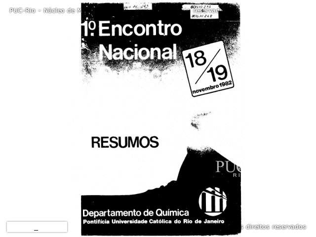 I ENCONTRO NACIONAL DE QUÍMICA ANALÍTICA e III SIMPÓSIO DO DEPARTAMENTO DE QUÍMICA DA PUC-Rio, organizados pelo Departamento de Química. O coordenador do evento foi o prof. Adilson José Curtius. Estavam previstas "duas mesas-redondas, uma sobre Pós-Graduação e outra sobre Graduação, 8 conferências, uma exibição de vídeo-cassete, exposição de instrumentos e livros, além da sessão de painéis."