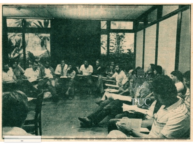 Uma das reuniões, em sala do IAG. Jornal da ADPUC, junho de 1983, p.4.