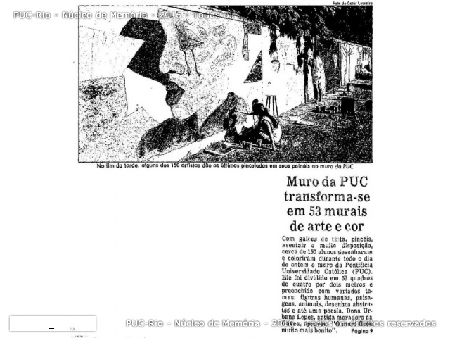 Por iniciativa dos Centros Acadêmicos de Artes e de Comunicação Social, os muros da Universidade na rua Marquês de São Vicente foram pintados com murais, por alunos e artistas convidados. No entanto, os muros fazem parte do conjunto arquitetônico do Solar Grandjean de Montigny, tombado pelo Iphan desde 1938, e não poderiam ter sido modificados. Após alguns dias de tentativas de acordo para manutenção das pinturas, os muros foram repintados de branco.