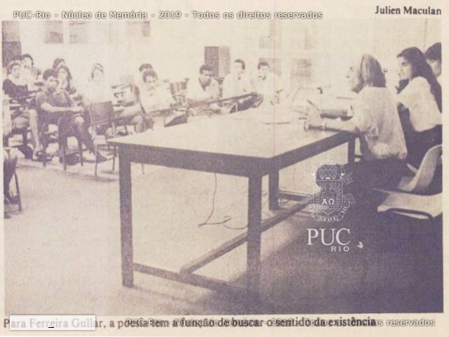 O primeiro convidado foi o professor Affonso Romano de San’Anna (Departamento de Letras). O poeta maranhense Ferreira Gullar e Chacal, da nova geração de poetas brasileiros, foram os seguintes.