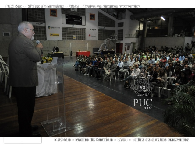 Cerimônia de encerramento do PIBIC, com palestra do Prof. Roberto DaMatta (SOC). Fotógrafo Antônio Albuquerque. Acervo do Núcleo de Memória.