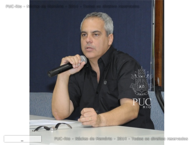 O Prof. Antonio Zuin, no Auditório Padre Anchieta.  Fotógrafo Antônio Albuquerque. Acervo do Núcleo de Memória.