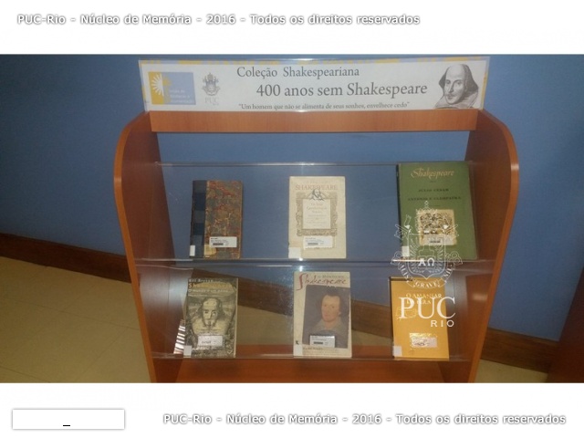 Em homenagem aos 400 anos da morte do poeta e dramaturgo inglês William Shakespeare. Exposição de obras da Coleção Shakesperiana e apresentação de vídeos produzidos pela Biblioteca e pela Agência.com, do Comunicar.