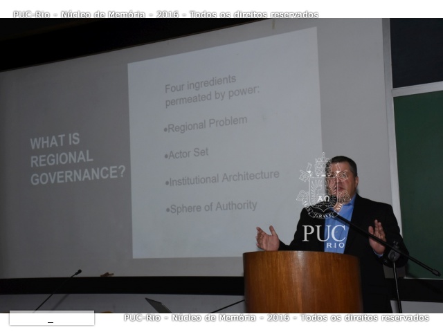 Latin American regional governance in a globalized world foi o tema da aula inaugural, que teve a presença do diretor de pesquisa e professor de Relações Internacionais da Universidade Iberoamericana do México, Thomas Legler.