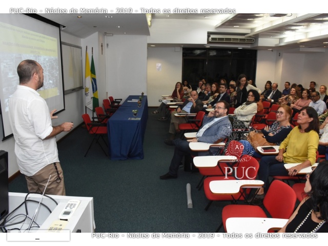 Apresentação do Prof. Fernando Galarce (DAU), no auditório do IAG. Fotógrafo Antônio Albuquerque.