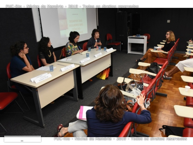 Mesa com Ana Carolina Radd (PUC-Rio), Profa. Eugênia Zandoná (UERJ), Profa. Moema Guedes (UERJ) e Profa. Hildete Pereira (UFF). Evento realizado na sala K102. Fotógrafo Antônio Albuquerque.