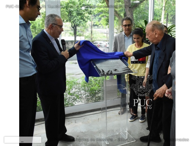 O Reitor Prof. Pe. Josafá Carlos de Siqueira S.J. e o homenageado, o ex-aluno Luiz Cyrillo Fernandes, participaram do descerramento da placa alusiva ao início da construção do Edifício Engenheiro Luiz Cyrillo Fernandes, que abrigará o Departamento de Biologia. O projeto arquitetônico foi desenvolvido pelo Departamento de Arquitetura e Urbanismo.