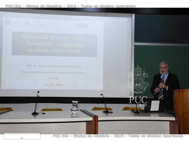 Este ano, organizada em parceria com o Instituto Militar de Engenharia (IME). A abertura do encontro teve a participação da profa. Adriana Gioda (QUI), da profa. Kátia Regina de Souza (IME), do Tenente-Coronel Erick Braga Galante (IME), do prof. Ricardo Aucélio (QUI) e do Coordenador Central de Pós-Graduação e Pesquisa da PUC-Rio, prof. Paulo César Duque Estrada.