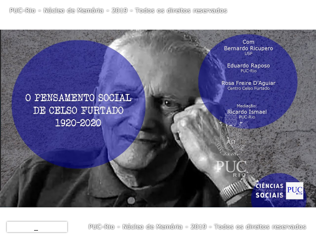 Palestrantes: Prof. Bernardo Ricupero (USP), Prof. Eduardo Raposo (CIS) e a jornalista Rosa Freire D’Aguiar, do Centro Celso Furtado. Evento realizado através da plataforma Zoom.