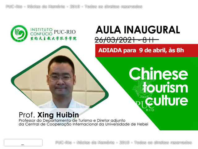 Tema: Chinese tourism culture. Palestrante: prof. Xing Huibin, da Universidade de Hebei.