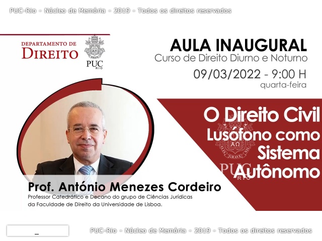Com o prof. António Menezes Cordeiro, Catedrático e Decano do grupo de Ciências Jurídicas da Faculdade de Direito da Universidade de Lisboa. Tema: O Direito Civil Lusófono como Sistema Autônomo.