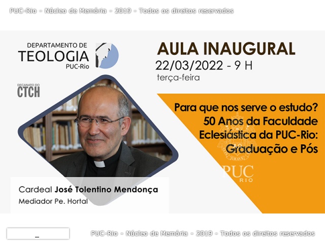 Para que nos serve o estudo? 50 anos da Faculdade Eclesiástica (Graduação e Pós-Graduação). Palestrante: Cardeal José Tolentino Mendonça, bibliotecário do Vaticano. Mediador: prof. Pe. Jesús Hortal Sànchez S.J..