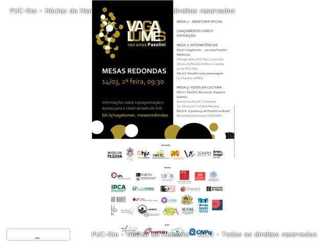 Participação de Luiz Nazario (UFMG), Antonio Sorella (IIC/Università G. d'Annunzio di Chieti-Pescara), Maria Betania Amoroso (UNICAMP), Lucas Lara (Museu da Pessoa), Solange Jobim e Souza (PSI) e Nilton G. Gamba Junior (DAD).