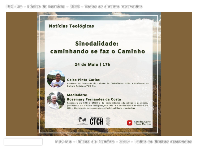 Palestrante: Celso Pinto Carias, Assessor da Comissão do Laicato da CNBB/Setor CEBs e professor da Cultura Religiosa/PUC-Rio.