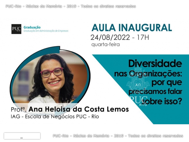 Diversidade nas Organizações: por que precisamos falar sobre isso? Palestrante: profa. Ana Heloisa da Costa Lemos.
