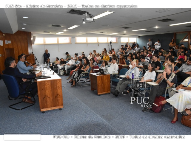 Na mesa, o Reitor pe. Anderson S.J. e o palestrante prof. Luíz Eloy Terena. Fotógrafo Antônio Albuquerque.
