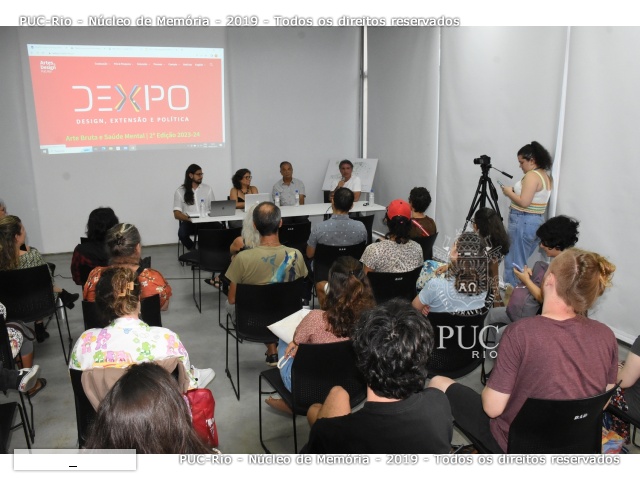 Mesa de abertura da DEXPO 2023/2024. Foram discutidas questões relacionadas à saúde mental, cuidado de si e arte, com parcerias com as instituições Museu Bispo do Rosário e Museu de Imagens do Insconsciente, para estabelecer elos entre criação e meios de cura. Participação dos professores Carlos Eduardo Félix da Costa e Nilton Gamba Jr. e dos convidados Luiz Carlos Mello (Museu de Imagens do Insconsciente) e Maria Raquel Fernandes (Museu Bispo do Rosário de Arte Contemporânea).