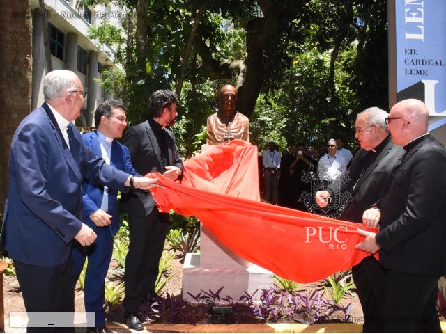Inauguração do busto dedicado ao Cardeal Dom Sebastião Leme da Silveira Cintra. Participaram da cerimônia o Arcebispo do Rio de Janeiro, Cardeal Orani Tempesta, O. Cist., o Reitor pe. Anderson Pedroso S.J. e o presidente da FPLF, pe. Roberto Barros S.J. Em seguida, foi celebrada uma missa solene na Igreja Sagrado Coração de Jesus.