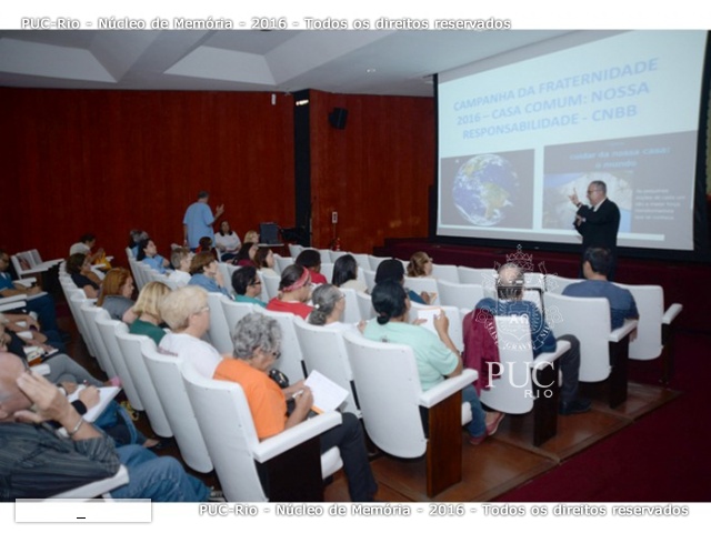 O tema da Campanha da Fraternidade de 2016 é Casa Comum, Nossa Responsabilidade. O Reitor, Prof. Pe. Josafá Carlos de Siqueira S.J., proferiu palestra sobre o tema, inspirado na Carta Encíclica Laudato Si’, do Papa Francisco, que discute problemas relacionados ao meio ambiente e, principalmente, à questão do saneamento básico.