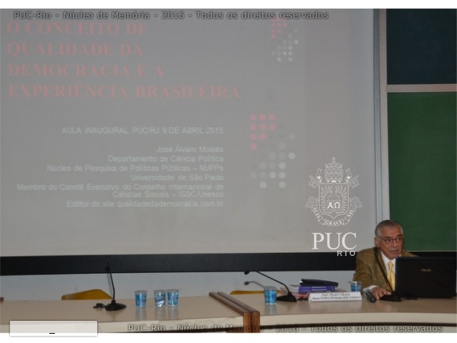 O Prof. José Álvaro Moisés, membro do Conselho Internacional de Ciências Sociais (ISSC/Unesco) e Diretor do Núcleo de Pesquisa de Políticas Públicas (NUPPs/USP) abordou o tema O Conceito de Qualidade da Democracia e a Experiência Brasileira.