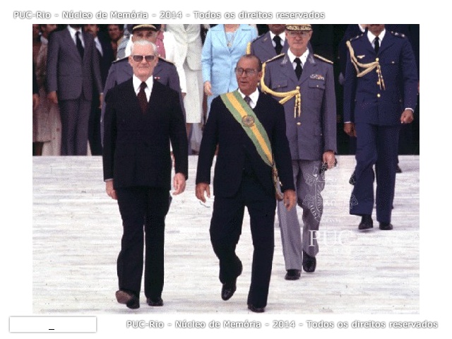 O general Figueiredo após a posse, em companhia do general Ernesto Geisel. > General João Baptista de Oliveira Figueiredo, presidente da República (1979 – 1984). Assume a presidência do Brasil o general João Baptista Figueiredo.