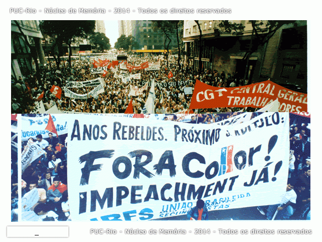 Manifestação pública pelo impeachment de Fernando Collor. > Impeachment do Presidente Fernando Collor. Impeachment do Presidente Fernando Collor. Assume o Vice-Presidente, Itamar Franco.