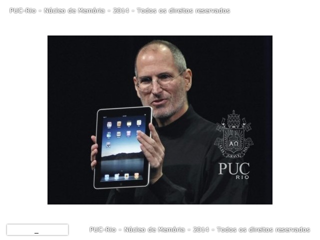 Steve Jobs no lançamento do Ipad. > Lançamento do IPad. A Apple lança a primeira versão de seu tablet, o IPad.