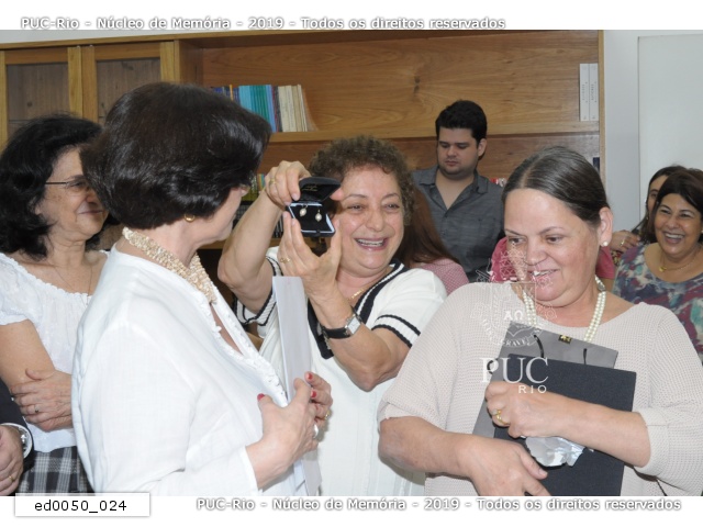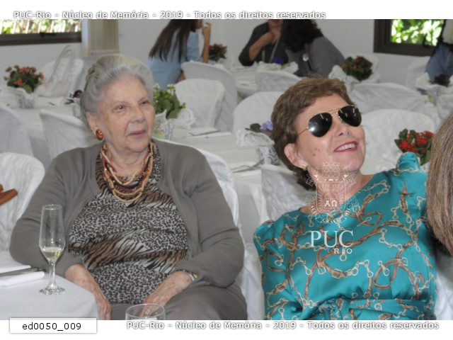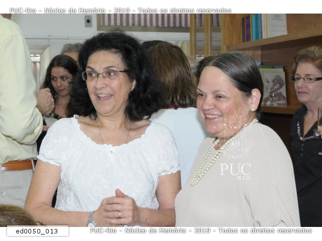 As professoras Maria Helena Novaes Mira e Vera Braga Lemgruber participam do almoço de confraternização após a cerimônia de posse do professor Jesus Landeira-Fernandez como diretor do Departamento de Psicologia. |