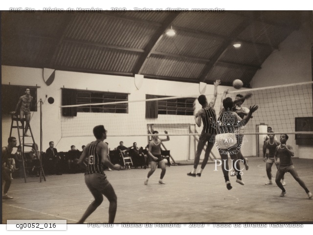 Jogo de voleyball no antigo ginásio. Times não identificados. |