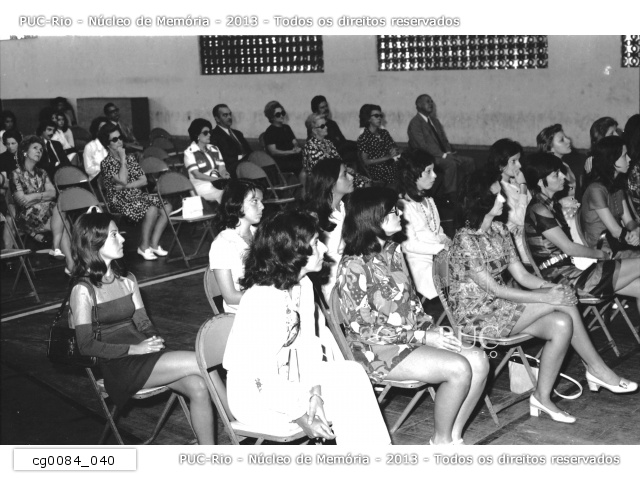 Texto sobre as parcerias do IAG. Foto da Formatura do IAG em 1968, no antigo Ginásio da PUC-Rio. |