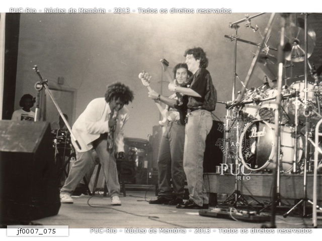Show de Caetano Veloso na semana de instalação do comitê PUC-Rio da campanha da Ação da cidadania contra a miséria e pela vida, coordenada pelo sociólogo Herbert de Souza, o Betinho. Ao final do show, Caetano recebeu das mãos do Vice-Reitor Comunitário, prof. Augusto Sampaio, um exemplar do livro A flora do campus, de autoria do pe. Josafá Carlos de Siqueira S.J.. |