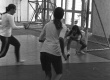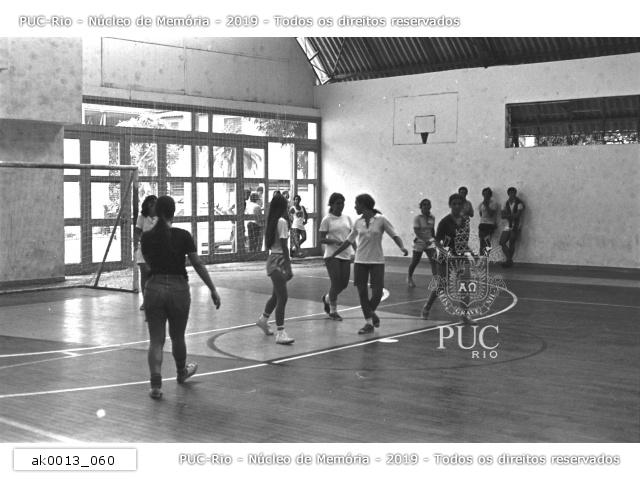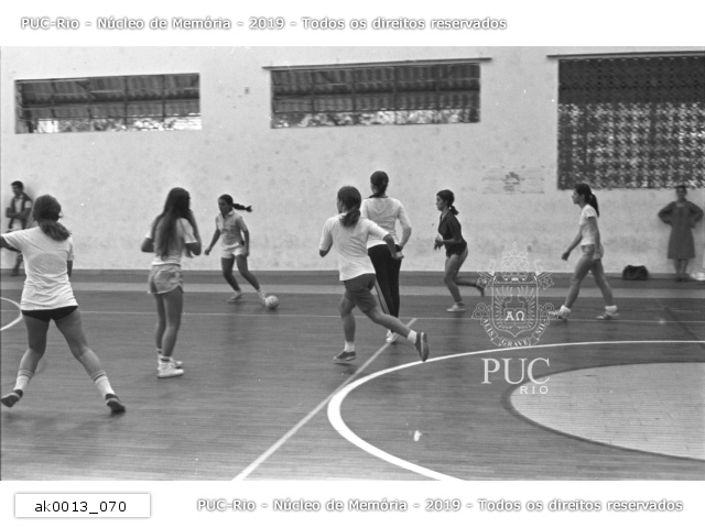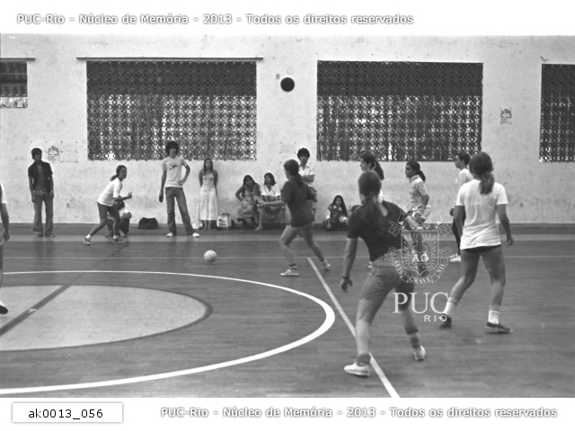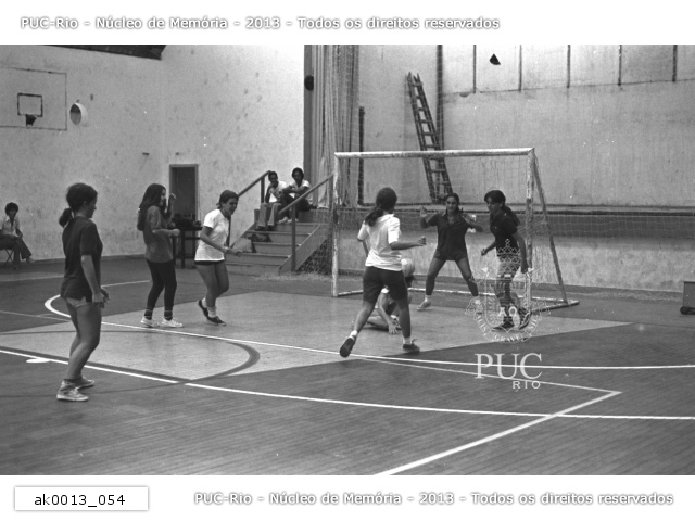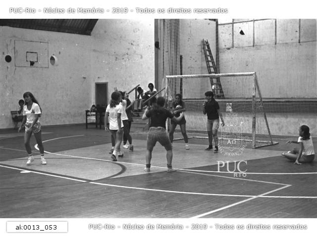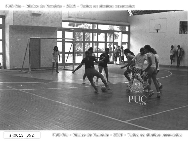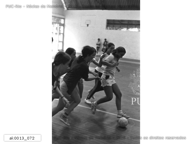 Alunas jogam futebol de salão. Conversam sobre a tática do jogo. Aluno filma em Super 8. |